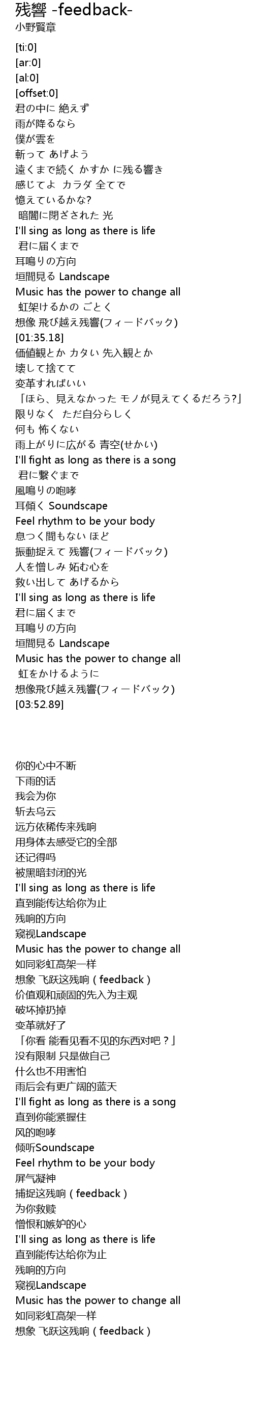 | [03:04.75] | 振動捉えて 残響(フィードバック) |
