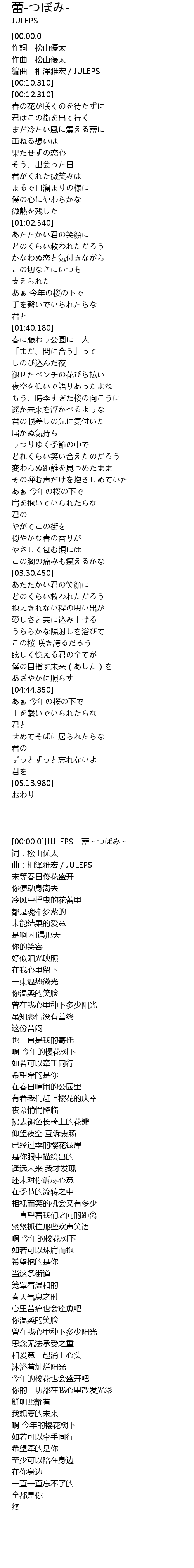 | [00:00.0] | ]JULEPS - 蕾~つぼみ~ |