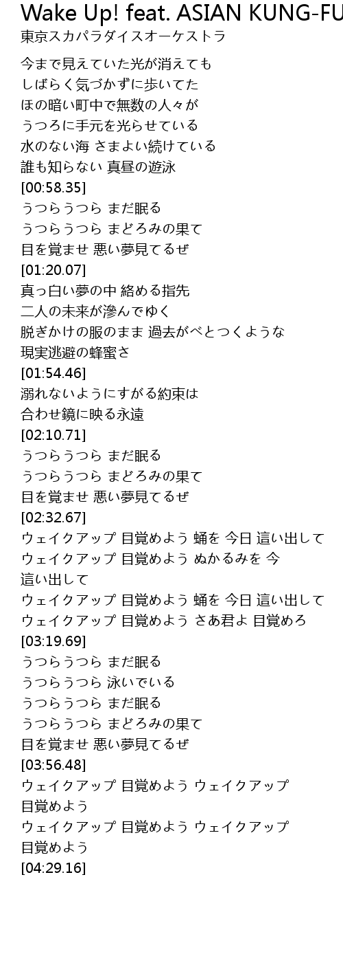 | [04:07.52] | ウェイクアップ 目覚めよう ウェイクアップ 目覚めよう |