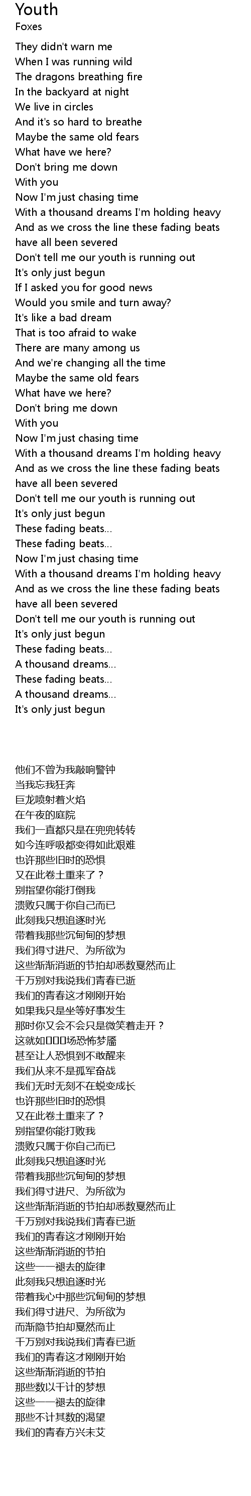 | Song | Youth |