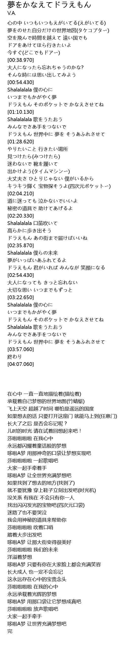 | [03:46.850] | ドラえもん 世界中に 夢を そうあふれさせて |