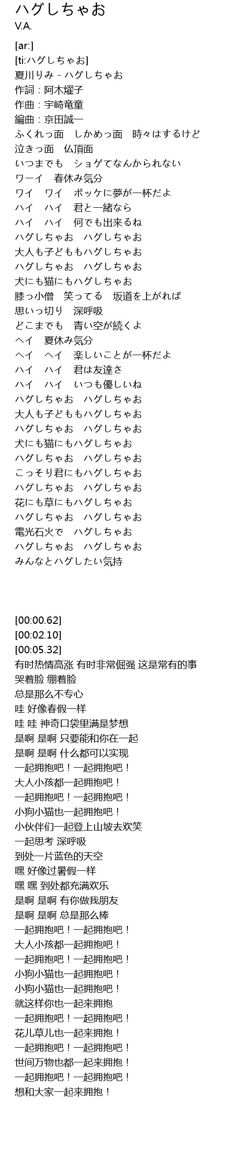 | [01:07.96] | ハグしちゃお ハグしちゃお |