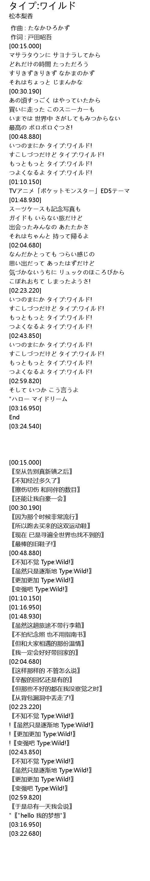 | [02:44.590] | いつのまにか タイプ:ワイルド! |
