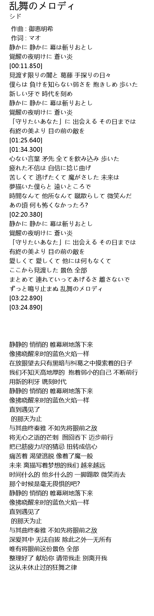 | [02:44.250] | 覚醒の夜明けに 蒼い炎 |