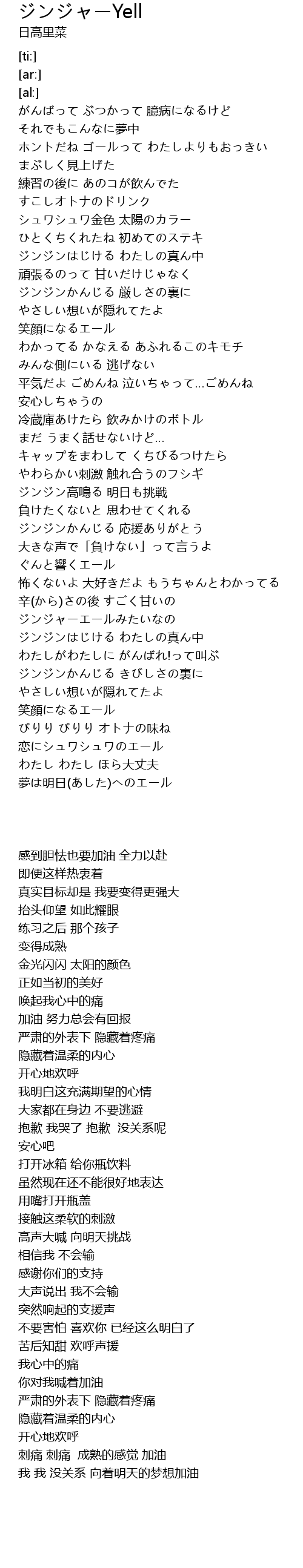 | [02:18.19] | ジンジン高鳴る 明日も挑戦 |