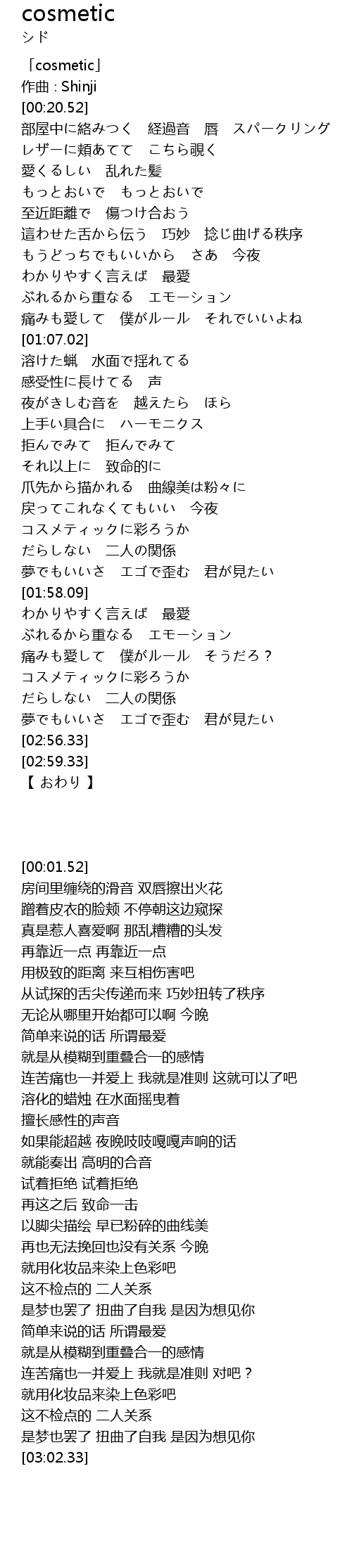 | [00:01.52] | 「cosmetic」 |