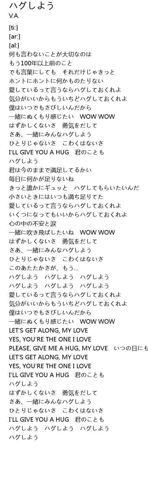 | [02:44.99] | ハグしよう ハグしよう ハグしよう |