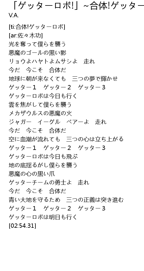 | [02:40.97] | ゲッター1 ゲッター2 ゲッター3 |