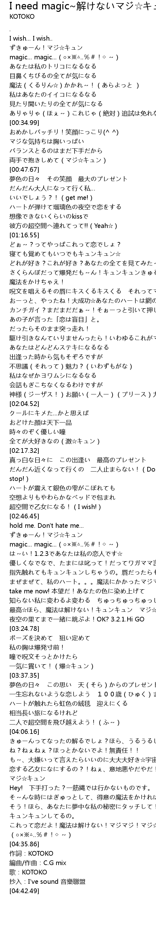 | [04:37.82] | 作詞:KOTOKO |