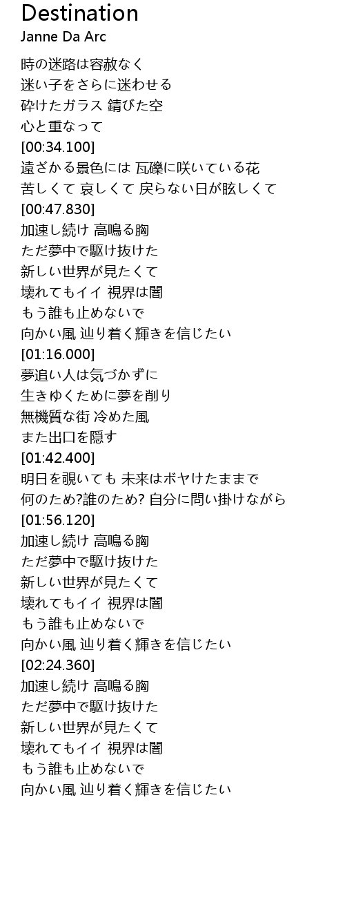 | [03:20.410] | 壊れてもイイ 視界は闇 |