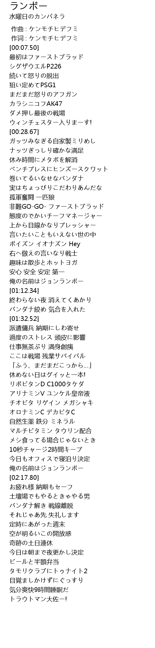 | [02:12.98] | 俺の名前はジョンランボー |