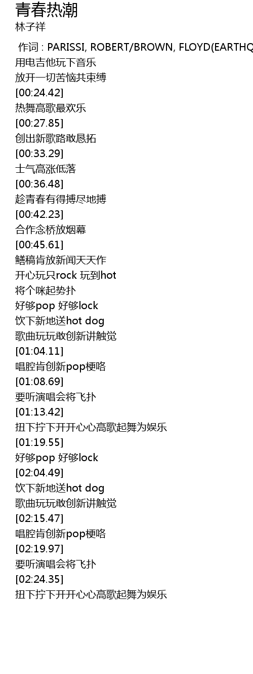 | [02:02.21] | hao gou pop hao gou lock |