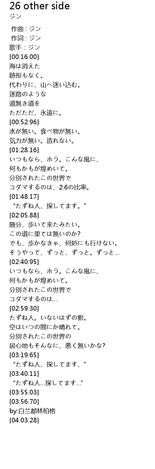 | [00:01.000] | 作词 : ジン |