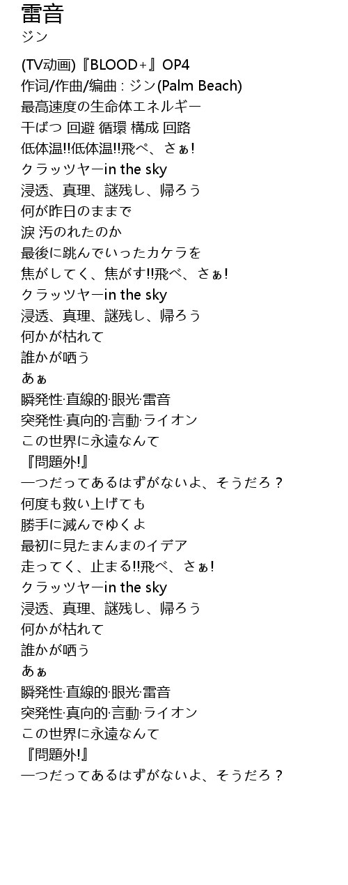 | [03:10.900] | 瞬発性·直線的·眼光·雷音 |