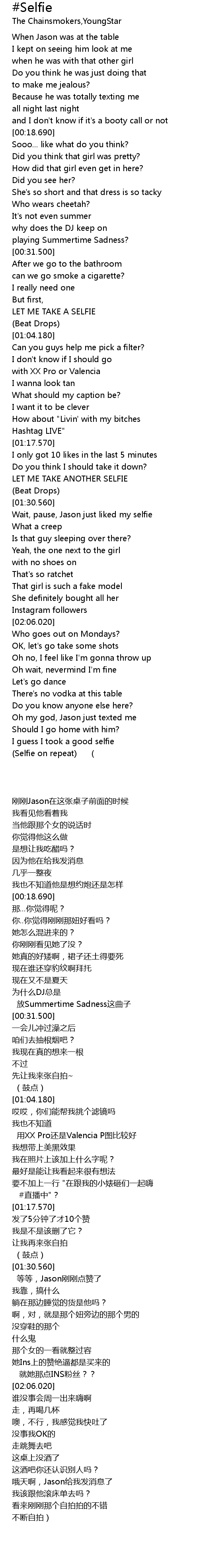 | [01:22.180] | LET ME TAKE ANOTHER SELFIE |