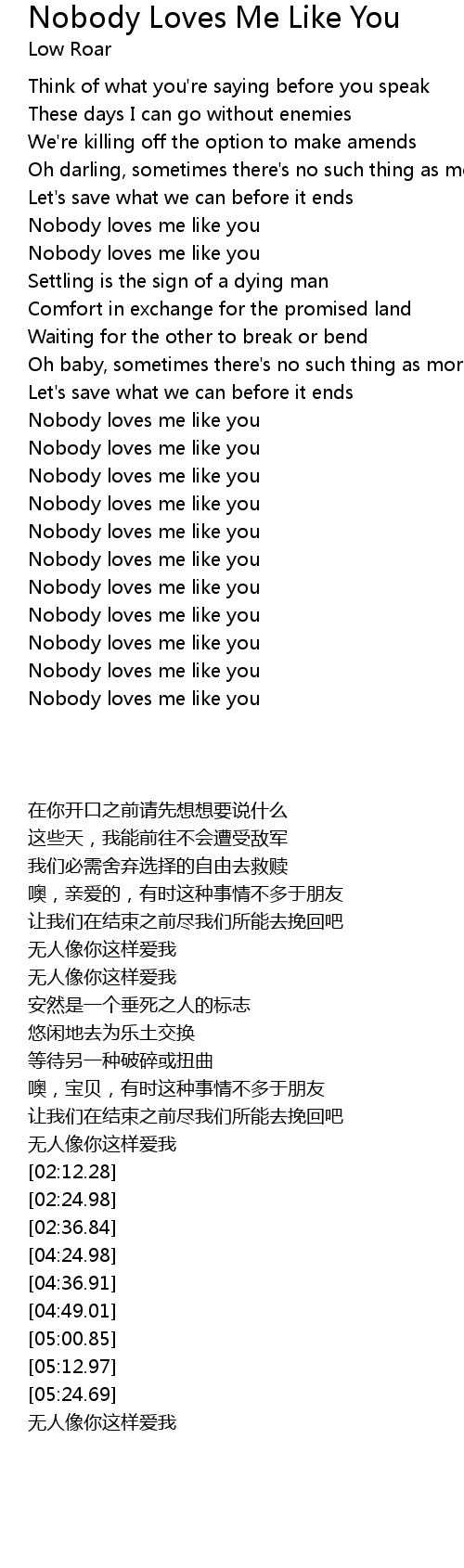 | [05:12.97] | Nobody loves me like you |