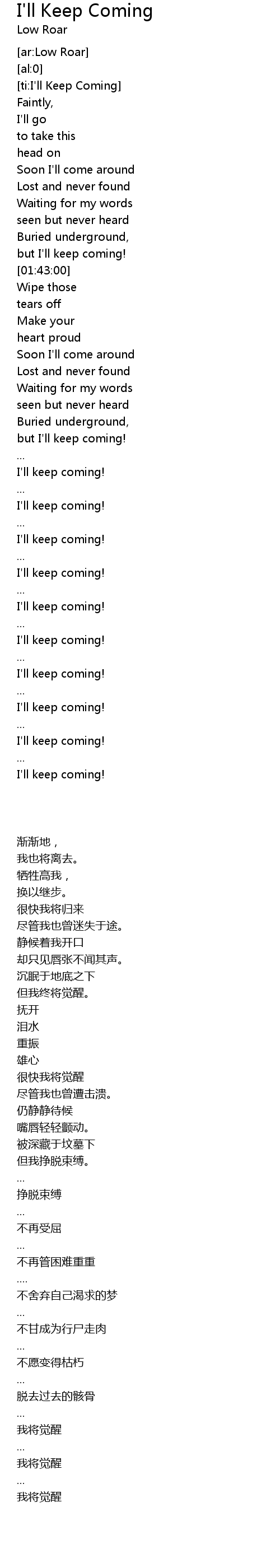 [ti:I'll Keep Coming] |