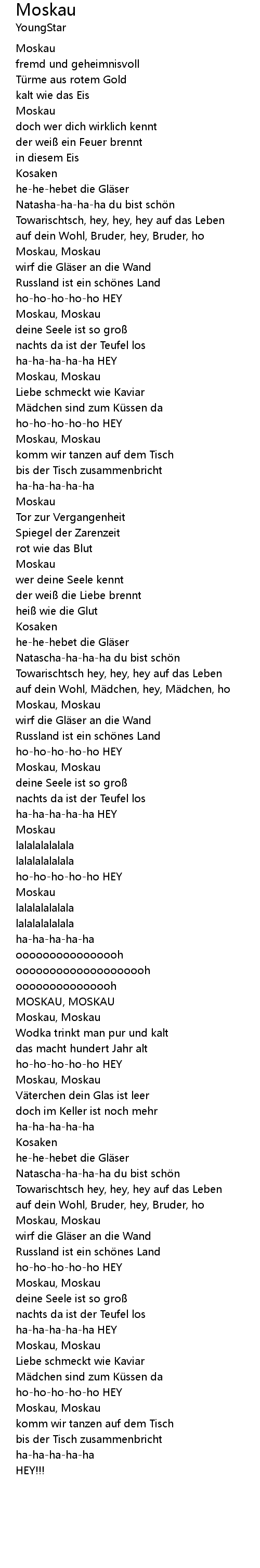 | Song | Moskau |