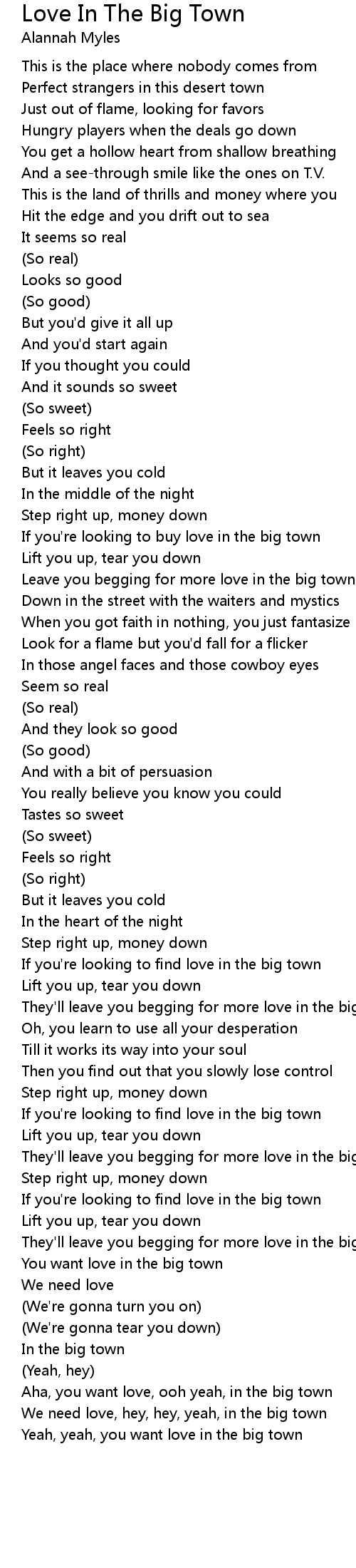 Aha, you want love, ooh yeah, in the big town |