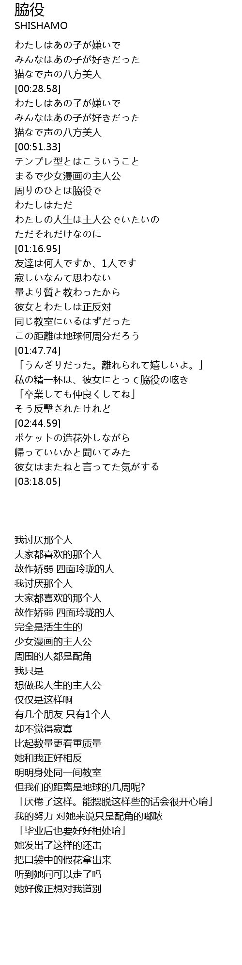 | [02:27.38] | 私の精一杯は、彼女にとって脇役の呟き |