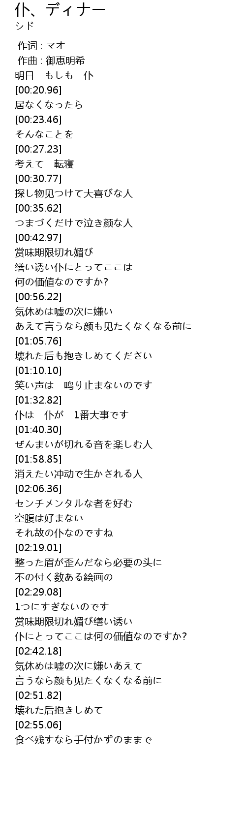 | [02:55.68] | 食べ残すなら手付かずのままで |