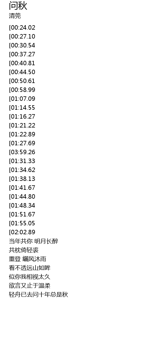| [02:55.76][00:24.02] | 荒度十年秋 |