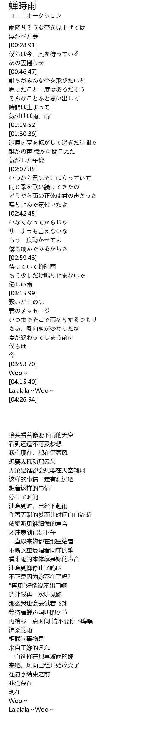 | [02:24.06] | どうやら雨の正体は君の声だった |