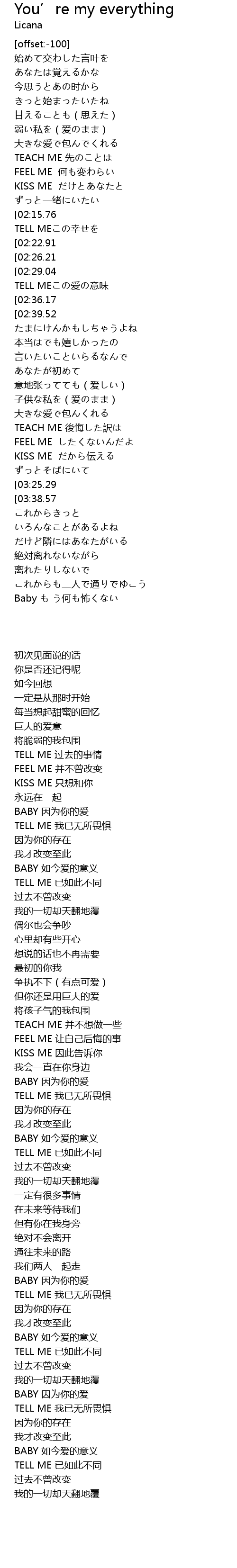 | [01:30.10][02:39.52][03:45.91][04:12.29] | 今违うよ My everything |