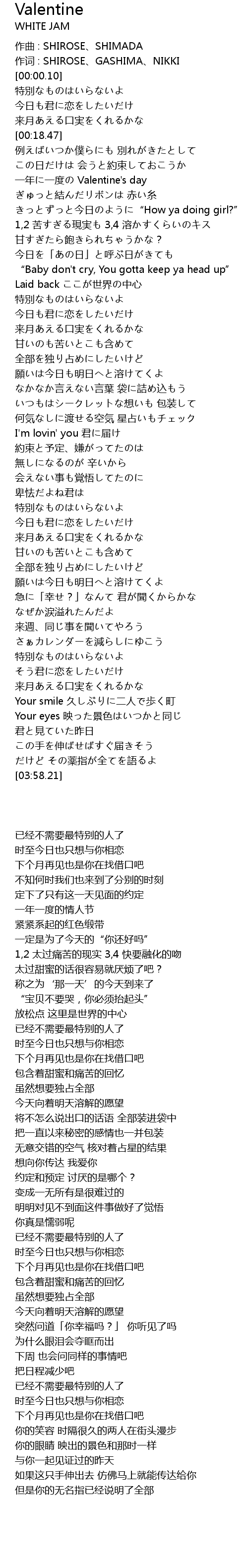 | [00:36.38] | 一年に一度の Valentine's day |