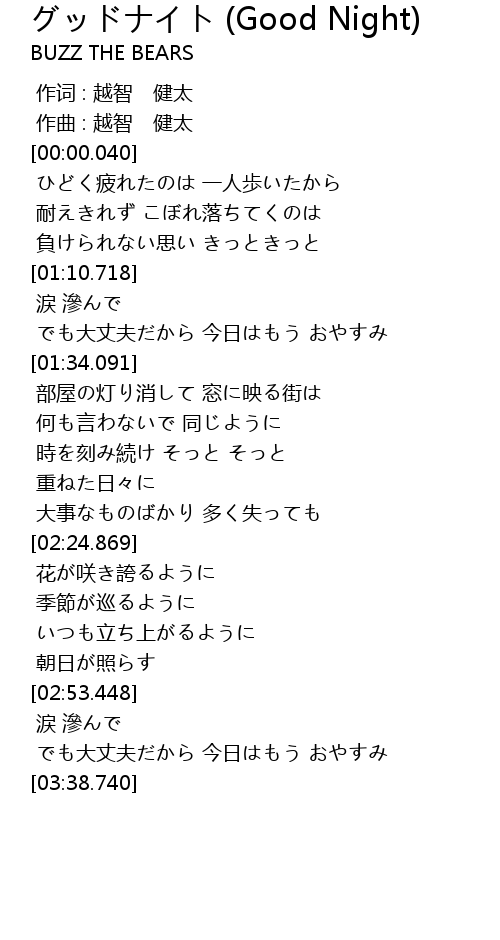 | [03:26.042] | でも大丈夫だから 今日はもう おやすみ |