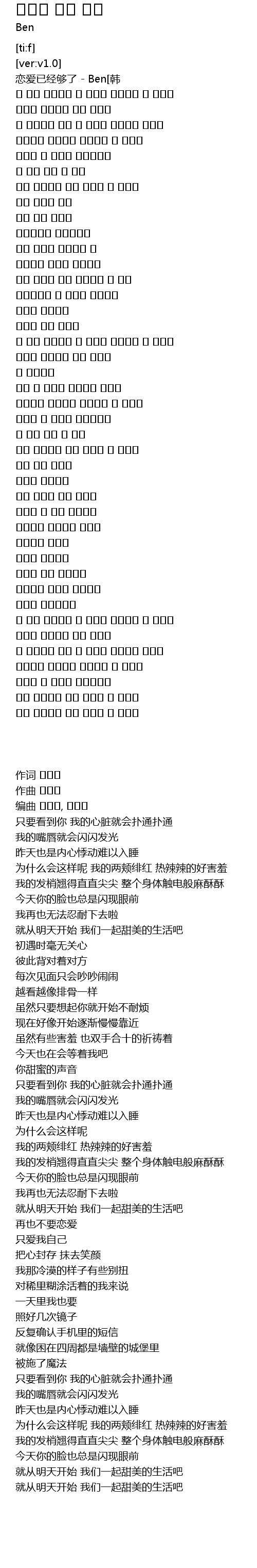 | [00:01.00]恋爱已经够了 - Ben[韩] |