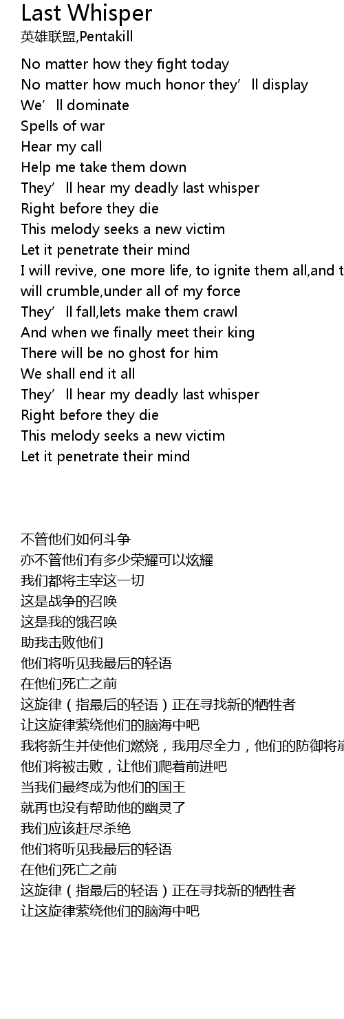 | [01:03.336] | They' ll hear my deadly last whisper |
