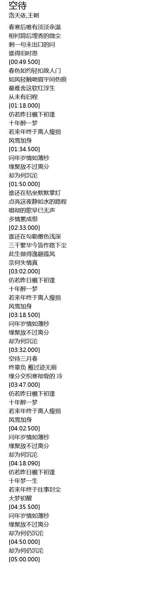 | [03:33.480] | kōng dài sān yuè chūn |