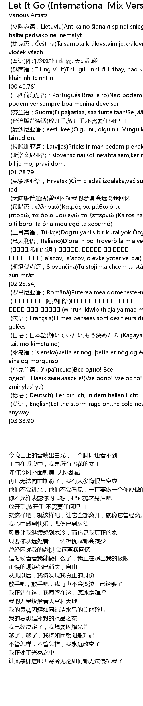 | [03:24.69] | (英语;English)Let the storm rage on,the cold never bothered me anyway |
