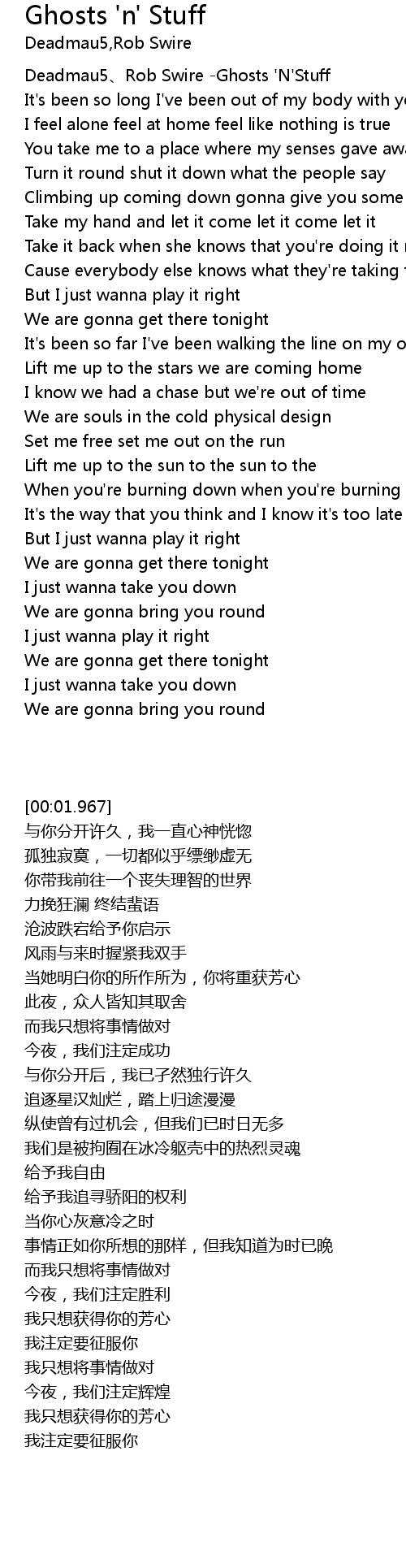 | [00:01.967] | Deadmau5 Rob Swire Ghosts ' N' Stuff |