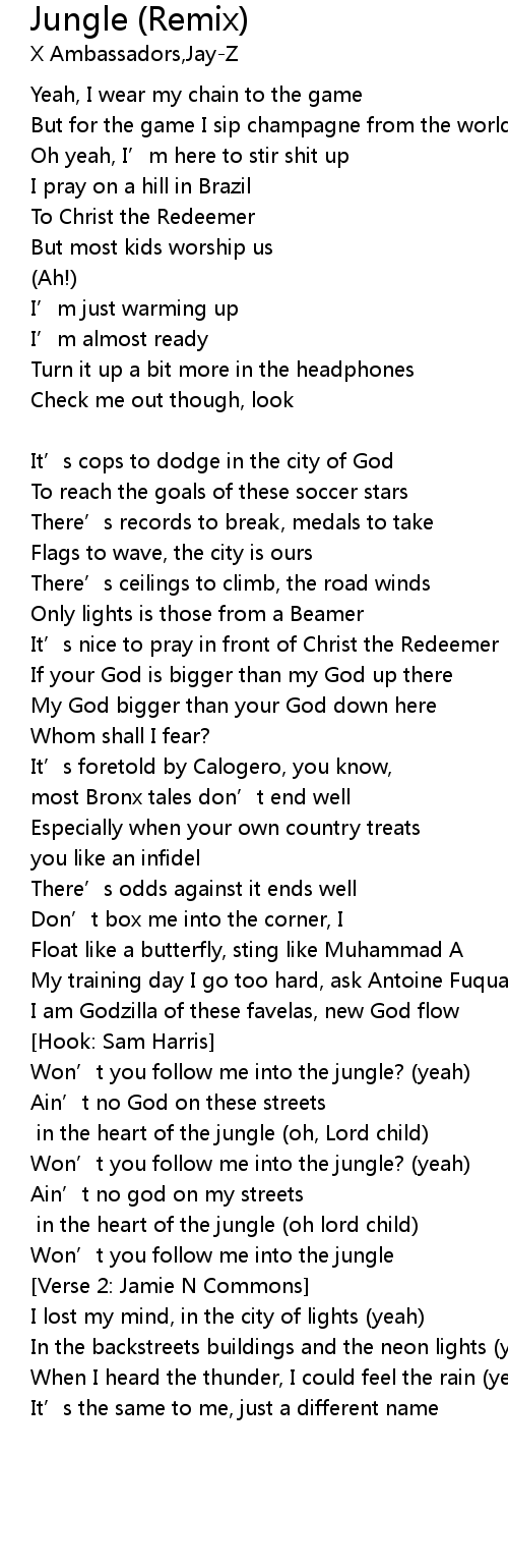 | Won' t you follow me into the jungle? yeah | |