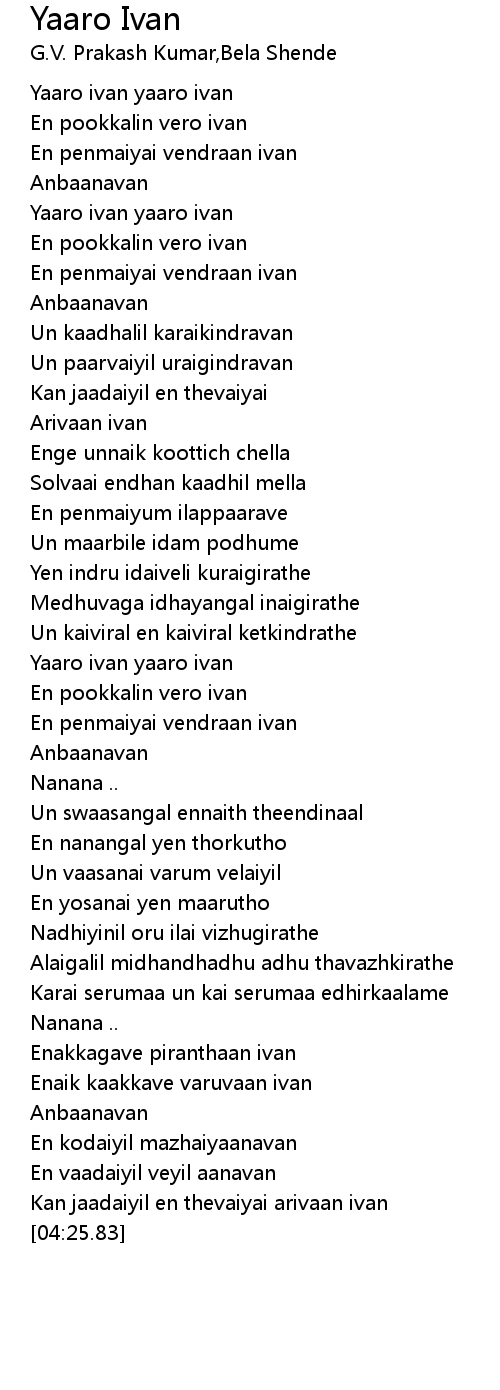 Kan jaadaiyil en thevaiyai arivaan ivan |