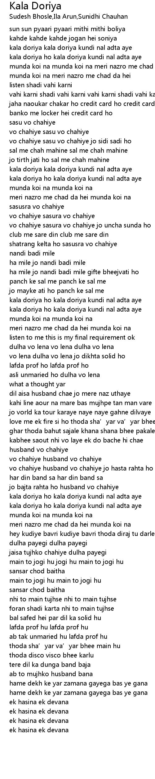 | [00:24.34] | kala doriya kala doriya kundi nal adta aye |