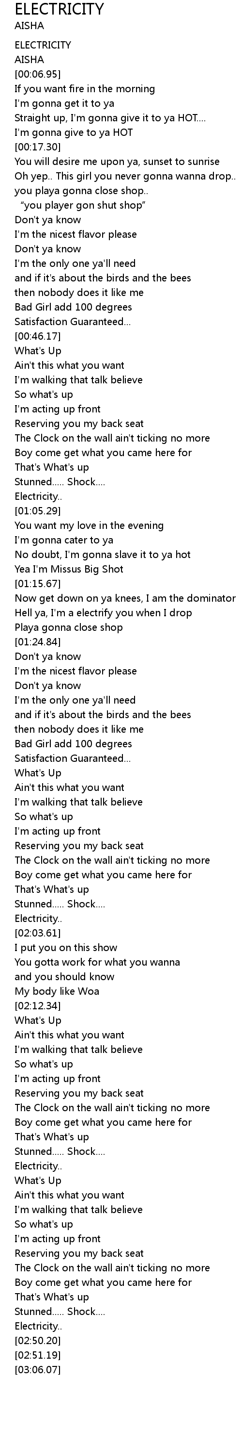 | [00:00.00] | ELECTRICITY |