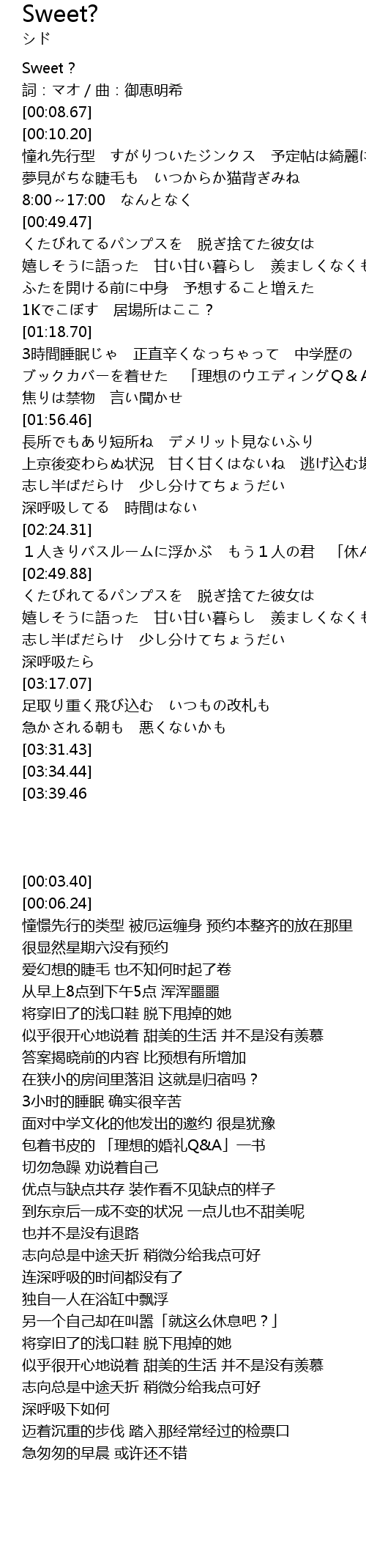 | [00:03.40] | Sweet? |