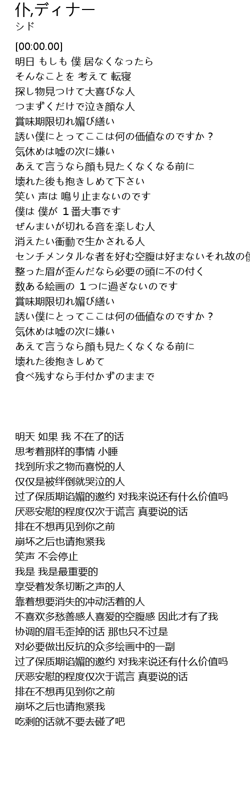 | [00:46.26] | 賞味期限切れ媚び繕い 誘い僕にとってここは何の価値なのですか? |