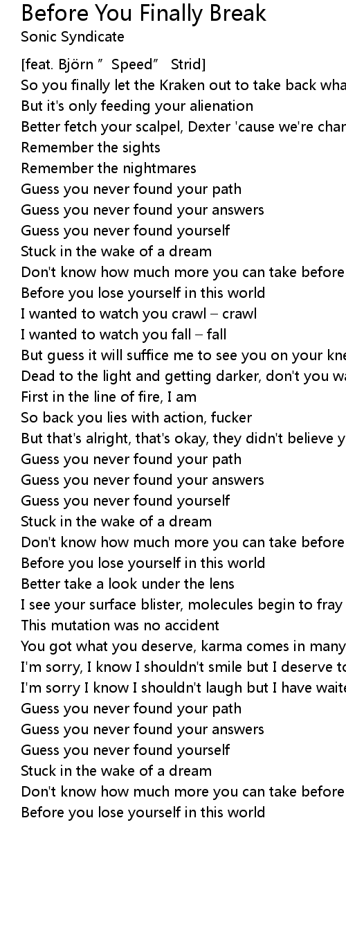 | Don' t know how much more you can take before you finally break | |