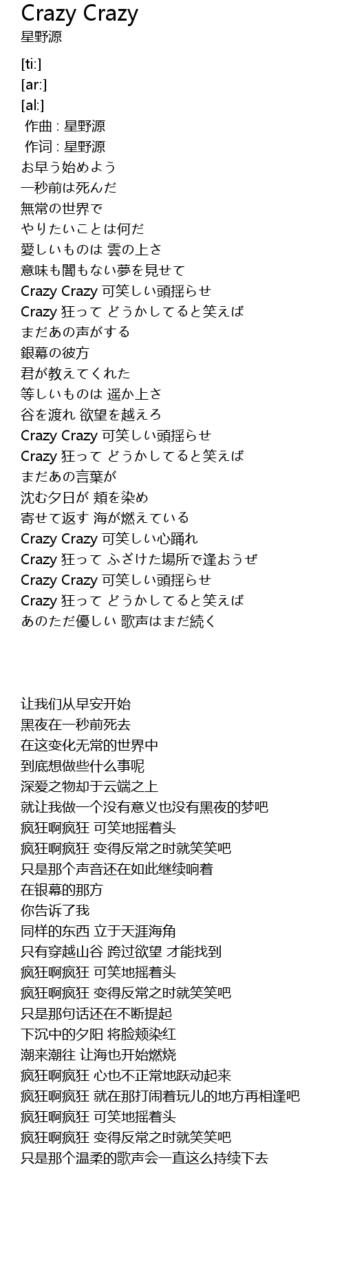 | [00:53.47] | Crazy Crazy 可笑しい頭揺らせ |