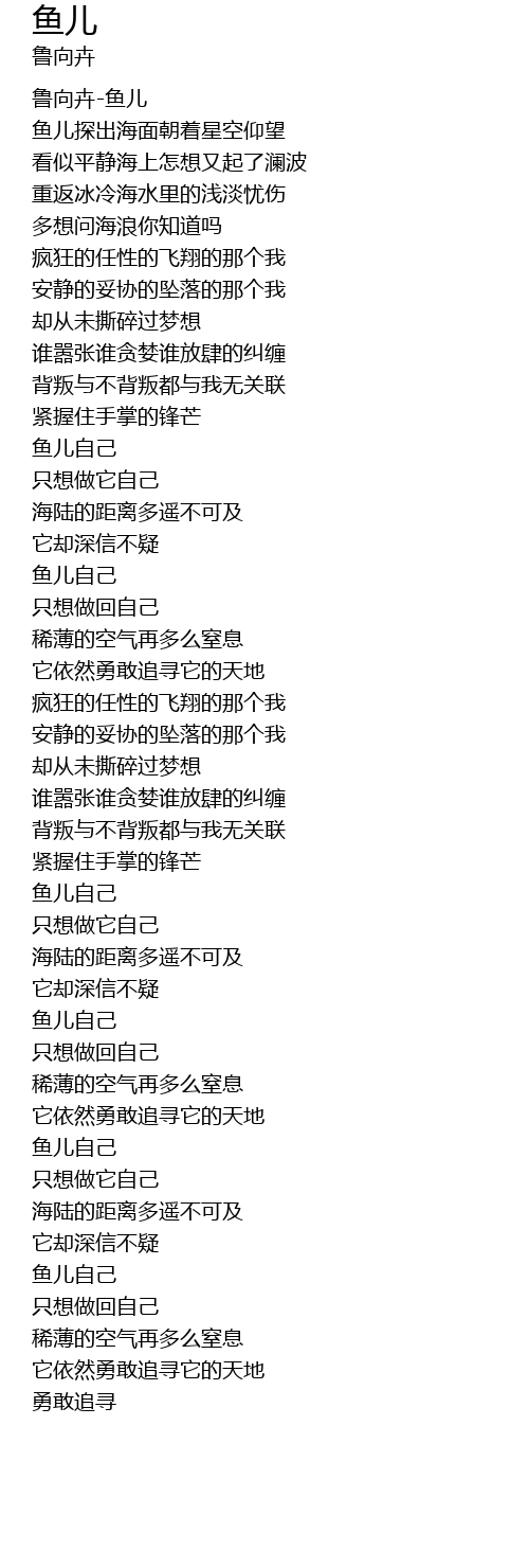 | [00:00.860] | 鲁向卉-鱼儿 |