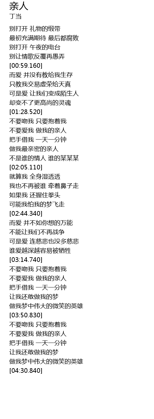 | [04:02.210] | 不要爱我 做我的亲人 |