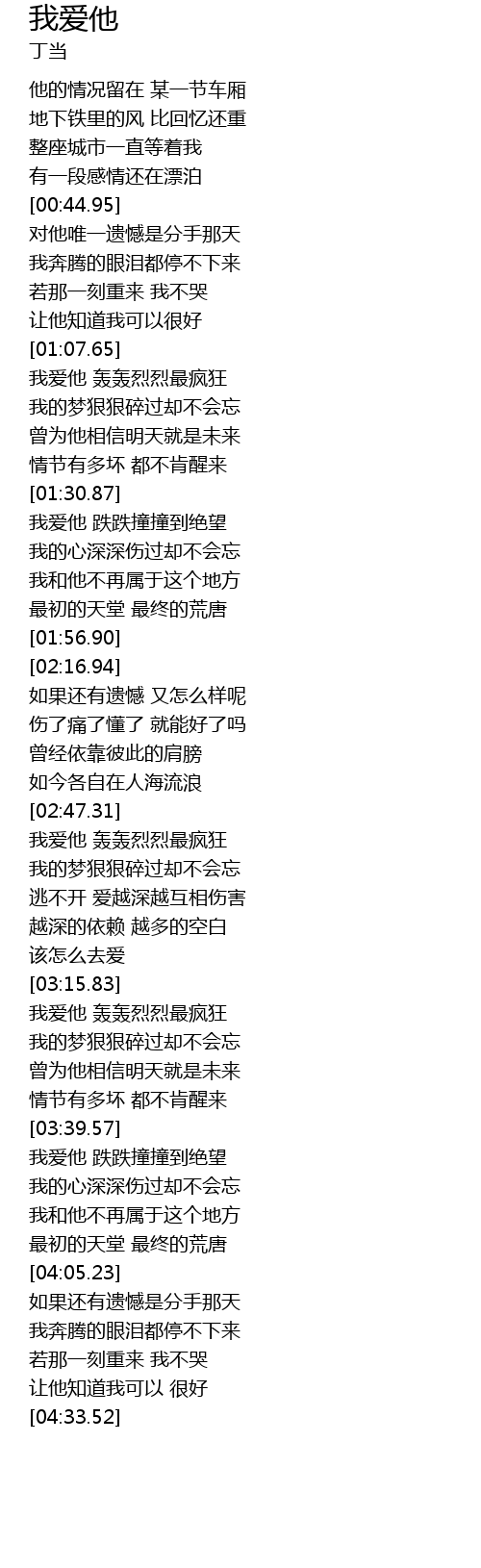 | [03:16.77] | 我爱他 轰轰烈烈最疯狂 |