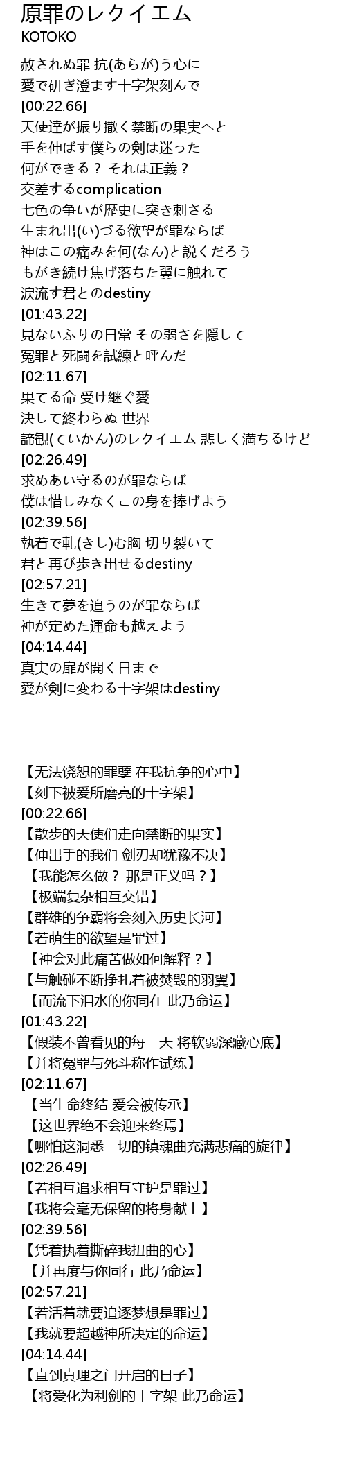 | [04:21.00] | 愛が剣に変わる十字架はdestiny |