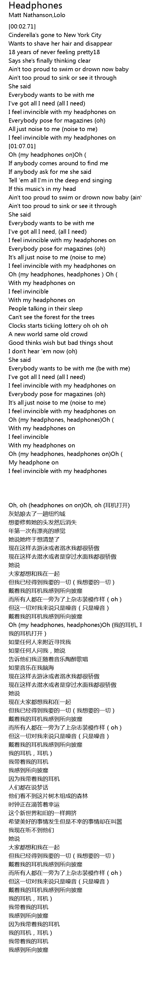 | [02:10.80] | Oh my headphones, headphones Oh |