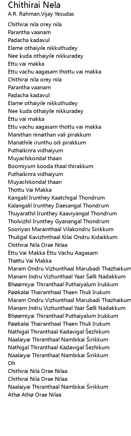 | [00:21.47] | Chithirai nila orey nila |