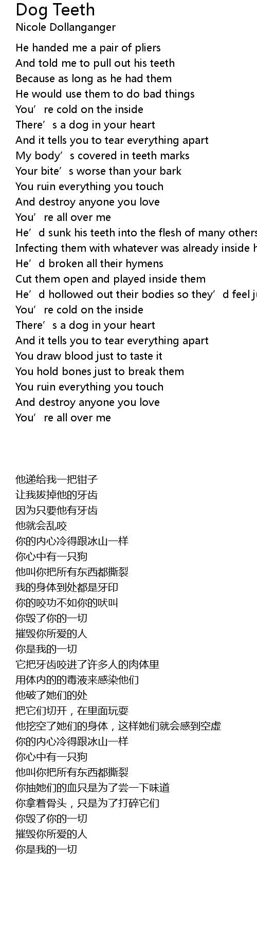| [00:07.90] | And told me to pull out his teeth |